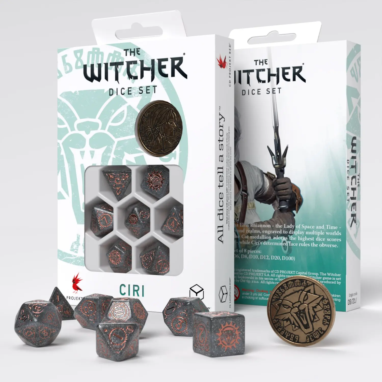 Bright, sharp, and full of kinetic energy, the Ciri “Zireael” set mirrors the fierce, unpredictable spirit of the Child of Destiny. White dice with teal-blue engravings create a luminous effect, while symbol work inspired by Ciri’s travels and bloodline gives the set its signature feel. Ideal for fast-paced adventurers, teleporting troublemakers, and chosen ones who definitely didn’t ask for the title.